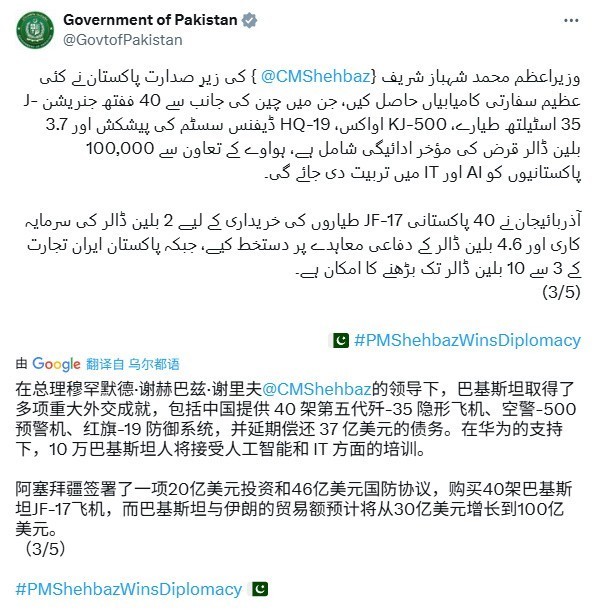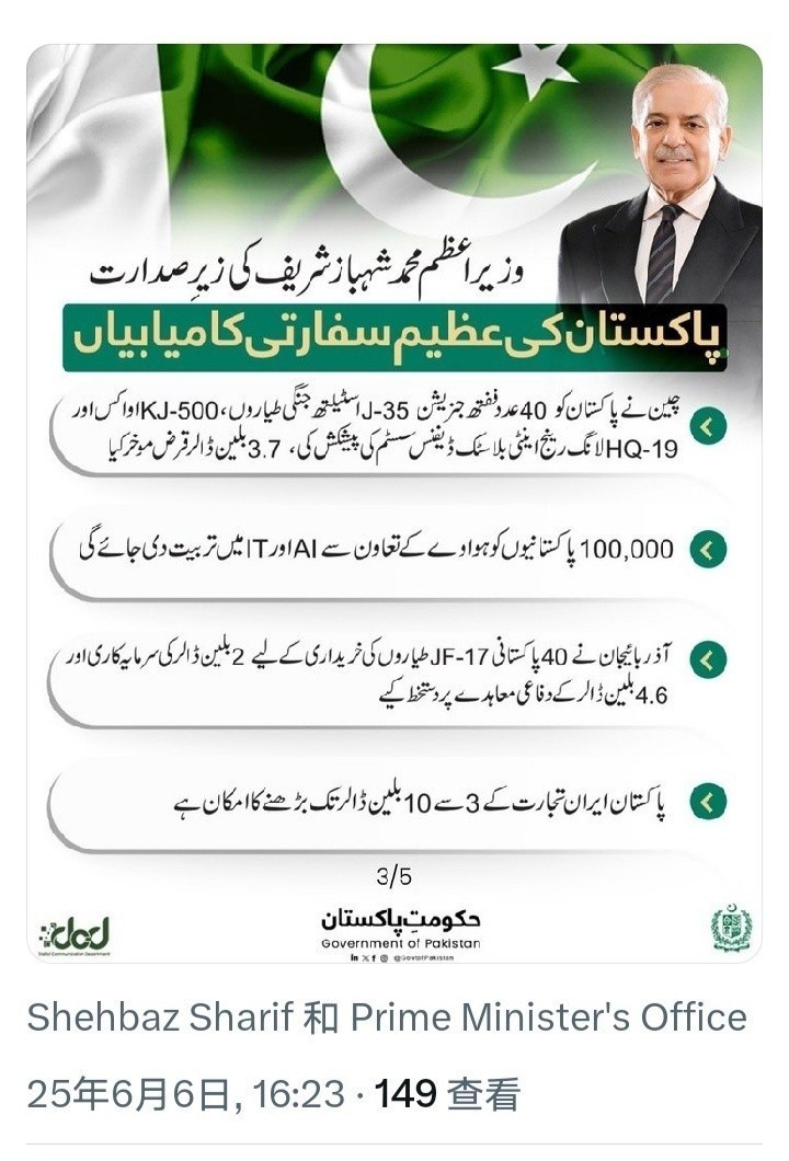 巴基斯坦政府在X平台认证账号连发5条推文,宣布在总理夏巴兹的领导下取得多项重大外交成就,包括对40架歼-35隐形战机、空警﹣500预警机、红旗﹣19防空反导系统的采购已全部下单,并获得“铁杆伙伴”的同意。消息发出后很快冲上了X平台南亚地区热搜榜,评论区中涌入大量破防的印度ID。据印媒报道,新德里当局在获悉相关消息后一度“乱作一团”,之后迅速同时向美国和俄罗斯发去信息,紧急求购F-35和苏-57战斗机。亚洲防务安全网站称,俄罗斯联合航空制造集团已与印度军方启动磋商,讨论的核心是在提供完整软件源代码访问权限的前提下,尽快向印军供应苏-57战机。而美方则在副总统万斯访印期间达成协议的基础上,提出愿意绕过现有军售障碍向印度出售F-35战机,最快可以在下个月宣布交易达成的消息。印媒称,新德里当局对于巴基斯坦竟然在如此短时间获得歼-35等先进战机的引进许可彻底破防,要知道东大军队自己都还没有正式装备歼-35,更不要说红旗-19还是综合性能超越美国萨德的反导系统。因此,印方认为这简直是“不按常理出牌”。分析进一步指出,巴军凭借歼-10CE+ZDK-03预警机的组合就在5-7空战中打了印军一个6比0,一旦获得更先进一代的歼-35+空警-500组合,印巴之间的空中力量对比可能“改写历史”。在后一个组合面前,印军“老旧的”苏-30MKI、米格-29以及非隐身的阵风战机可能都没有还手的机会。此外,红旗-19出现在巴基斯坦引进清单上也让印方“相当焦虑”,因为印军目前装备的仍是传统弹道导弹,全都是红旗-19的有效拦截对象。就算是印军正在开发,距离服役还遥遥无期的高超音速导弹,也处于红旗-19的防御范畴之内。不过也有印媒认为,巴基斯坦政府宣布的消息暂时仍是“单方面的”,而且也没有公布具体的交付时间,不排除这些交易只是达成了意向,或者具体交货时间还需几年后。印媒认为留给印度的应对时间可能还比较充裕。